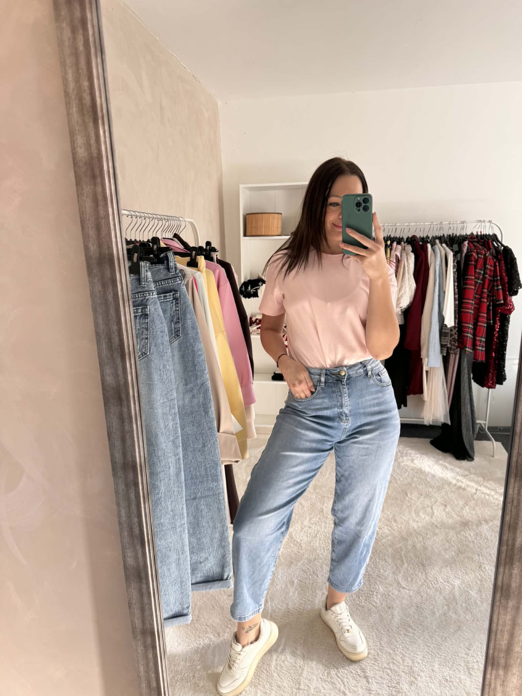 A fazon derékban és a fenékrésznél passzos, így szépen formál, míg a lábszárnál lazább szabás kényelmes mozgást és modern megjelenést ad. Ideális mindennapi viselethez – akár munkába, városi sétához vagy hosszabb napokra is.